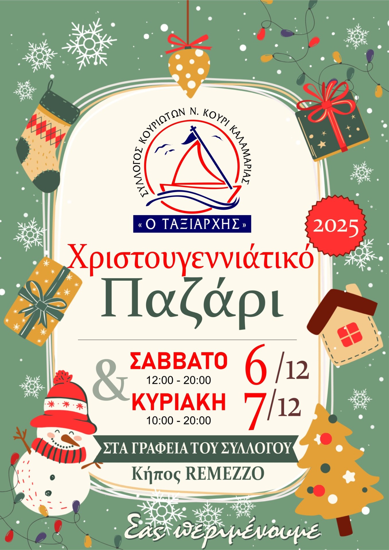 Ο Σύλλογος Κουριωτών Ν.Κουρί Καλαμαριάς, σας προσκαλεί στο δικό του Χριστουγεννιάτικο bazaar.