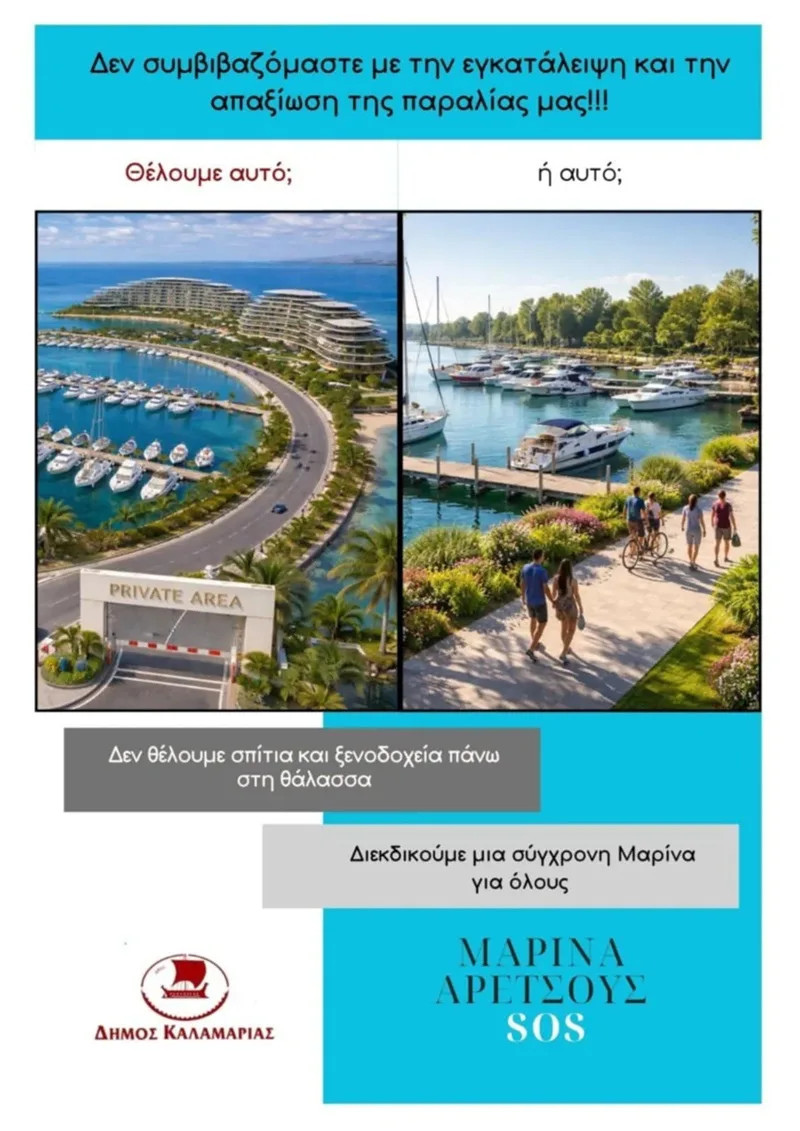 «Εκπέμπουμε σήμα προς όλες τις κατευθύνσεις ότι ο διαγωνισμός για τη Μαρίνα Αρετσούς με αυτούς τους όρους πρέπει να σταματήσει. Έχουμε σαφή άποψη για την ανάπτυξη της παραλιακής ζώνης. Έστω και αυτή την ύστατη ώρα, καλούμε την κυβέρνηση να δώσει τέλος σε αυτή την υπόθεση και να συζητήσει με τον δήμο Καλαμαριάς για τους τρόπους δόμησης, το ξενοδοχείο, αλλά και με το Remezzo», τόνισε.