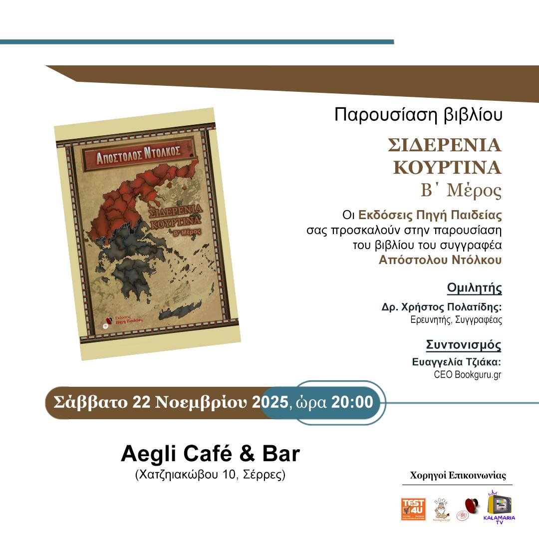 Ο ΔΗΜΟΣ ΚΑΛΑΜΑΡΙΑΣ και οι Εκδόσεις Πηγή Παιδείας σας προσκαλούν στην παρουσίαση του νέου βιβλίου του συγγραφέα Χριστόδουλου Ι. Κουτσουλιάνου, με τίτλο