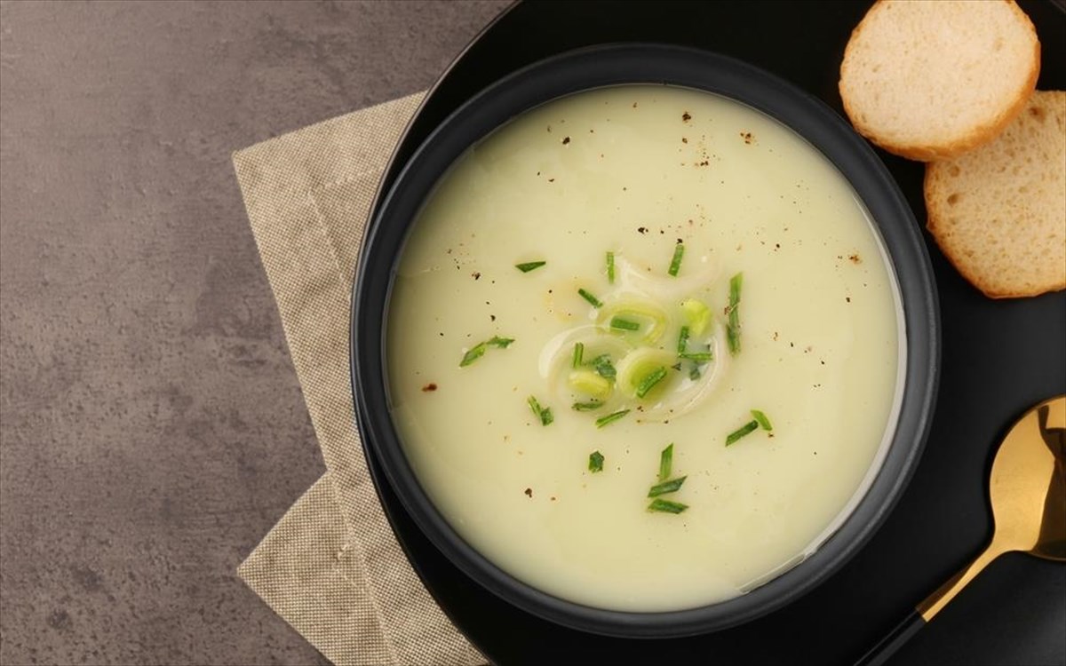 Βελουτέ πράσο-πατάτα με μοσχοκάρυδο
