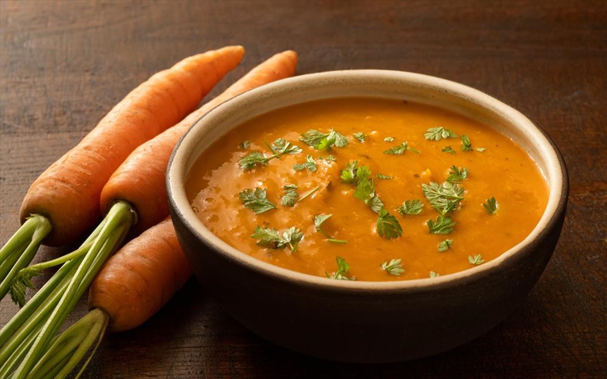 Σούπα καρότου με πορτοκάλι και κύμινο